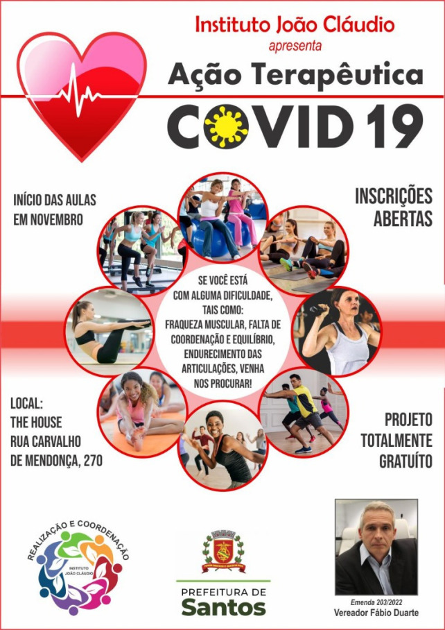 O INSTITUTO JOÃO CLÁUDIO, com o objetivo de melhorar a qualidade de vida áqueles que ficaram com sequelas pós Covid 19 apresenta a Ação Terapêutica Covid 19.