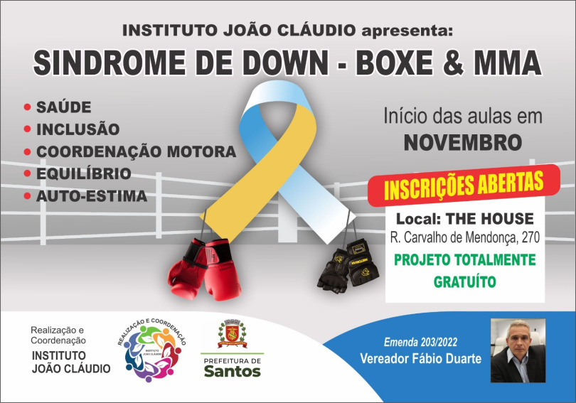 Serão oferecidas oficinas de MMA e Boxe para pessoas com Síndrome de Down, a serem realizadas no Instituto The House, em Santos.